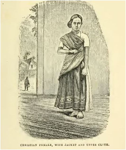அதாவது சாணார்(நாடார்), பறையர், ஈழவர், புலையர் முதலான ஒடுக்கப்பட்ட சாதிப்பெண்கள், கிறித்தவ மதத்துக்கு மாறியிருந்தால்கூட, மேற்கண்ட வரைபடத்தில் இருப்பதைப் போல் உடையணிந்தால், பழைய இந்து மதப்பழக்கவழக்கங்கள் குலைந்து போய் விடுமாம். அதனால் உயர்சாதி இந்துக்களின் மனம் புண்பட்டு, எரிச்சல் அடைந்து விட்டார்களாம். நன்கு படிப்பறிவு பெற்று திவான் பதவியிலிருந்த ஷங்கூனி மேனன் சொல்கிறார்.