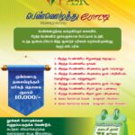 - பரிசுத் தொகை: போட்டி வகைகள் (8) ஒவ்வொன்றுக்கும்: ரூ. 10,000/-