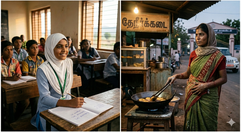 “நான் கலெக்டராவேன் டீச்சர்” என்றாள் பர்ஹானா.  “நீங்க பெரியவங்களான பெறகு என்ன வேலைக்குப் போகப் போறீங்க?” என்று ஐந்தாம் வகுப்பு ஆசிரியர் கேட்ட கேள்விக்குப் பெரும்பாலான மாணவிகள் ‘டீச்சராவேன், டாக்டராவேன்’ என்றும் மாணவர்கள் ‘மிலிட்ரில…