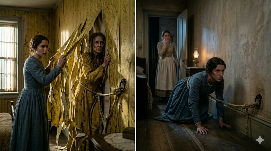 அந்தச் சுவர்க் காகிதத்தின் மஞ்சள் நிறம் மிகவும் விசித்திரமானது. நான் பார்த்த எல்லா மஞ்சள் நிறப் பொருள்களையும் அது நினைவூட்டுகிறது. ஆனால் பட்டர்கப் (கிண்ண வடிவப் பூ) பூக்களைப் போல அழகான மஞ்சள் நிறத்தை அல்ல. பழையதும் அழுக்கானதும் அருவருப்பான மஞ்சள் நிறப் பொருட்களையே இந்த மஞ்சள் நிறம் நினைவூட்டுகிறது.